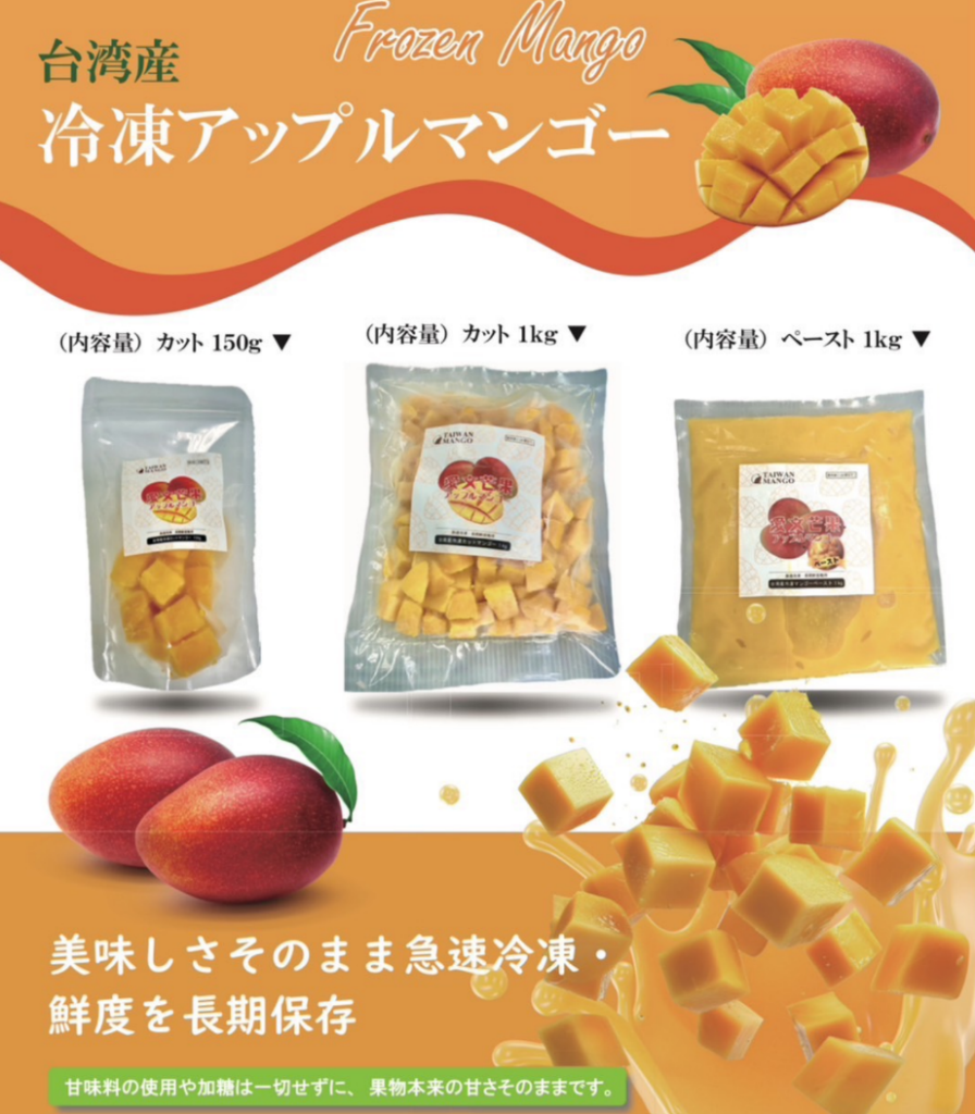 台湾を代表する高級品種「愛文マンゴー」を、完熟の状態でカットし急速冷凍。